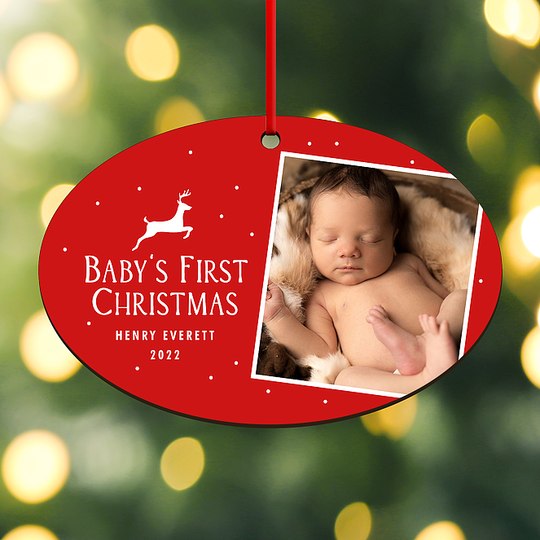 Create a one-of-a-kind keepsake with our personalized Christmas ornaments. Made and printed in the USA, these high-quality custom ornaments are a thoughtful gift for everyone on your list. Includes red ribbon.