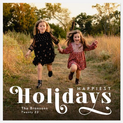 Create holiday magic with this retro-inspired flat greeting card that transforms your favorite family photo into a stunning seasonal celebration. The design features bold serif typography with elegant calligraphic flourishes overlaid on your full-photo background, creating a warm vintage aesthetic with contemporary flair. Perfect for sharing your family's holiday joy and creating lasting memories that recipients will treasure throughout the season.