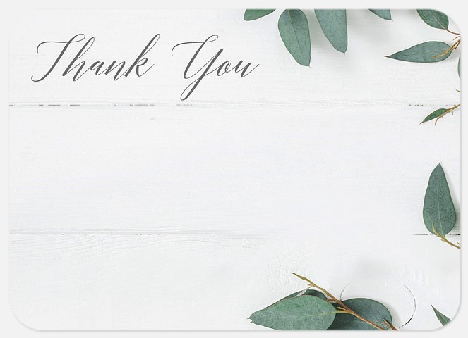 Express your heartfelt appreciation with this beautifully crafted thank you card featuring an organic botanical design. The elegant script calligraphy pairs perfectly with delicate eucalyptus leaves and branches set against a light wood grain background, creating a naturally sophisticated aesthetic.